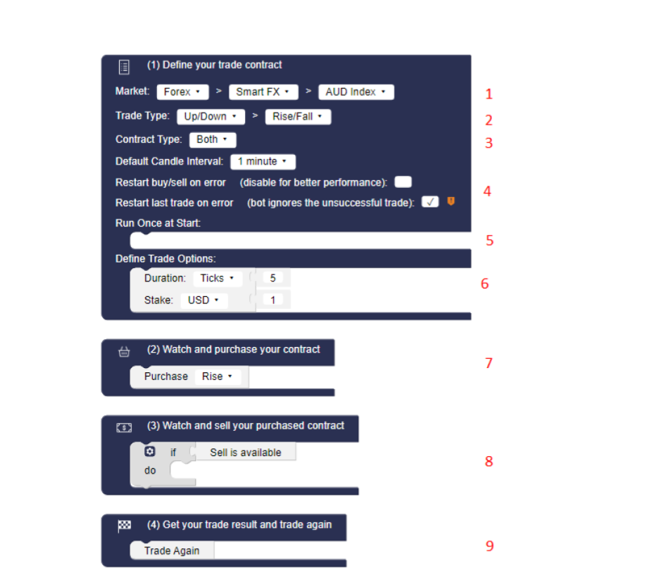 This is an instruction about how to create first bots on binary.com. Using it you can do your own bots for trade. It can be useful for traders to realize thier strategy or for those, who want to learn how to create bots.